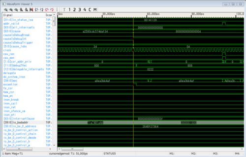 RISC-VのUC Berkeley実装であるRocketChip/BOOMはエミュレーション時にVerilatorを使用している。 基本的な命令トレースなどは出力することが出来るが、波形を出力するためのオプションが存在する。 make CONFIG=BOOMConfig output/rv64ui-p-add.vcd テスト…