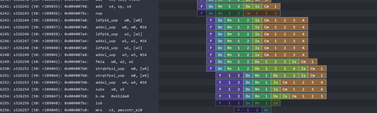 Gem5のO3情報をトレースしてみると以下のようになった。