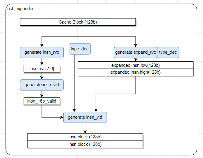 全体的なモジュールとしては,まず命令キャッシュからの命令ブロックを受け取り,これをRVC解析用のモジュールに通す.